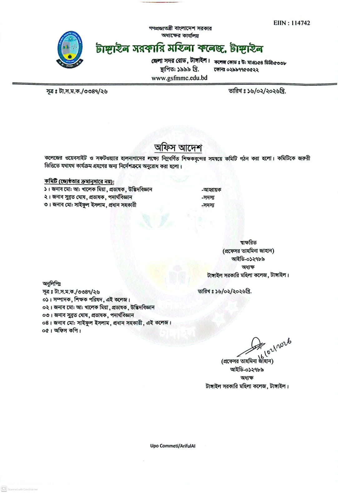 Tangail Govt. Mohila College, Tangail.